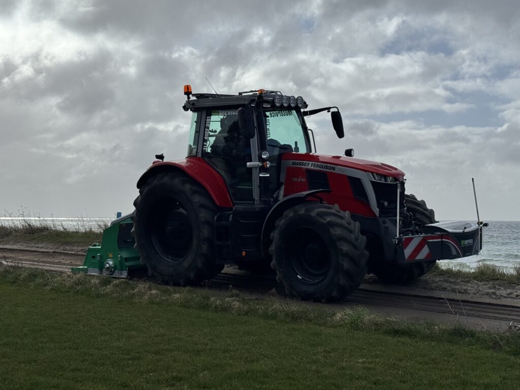 Den nye maskine i aktion med at genoprette grusvejene efter vinterens frost.